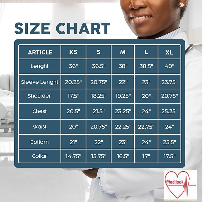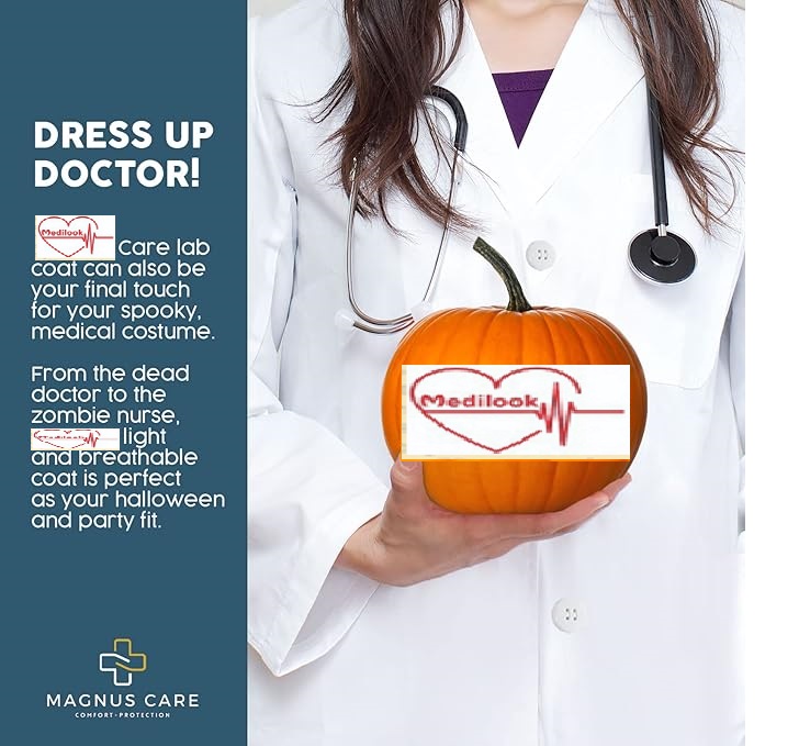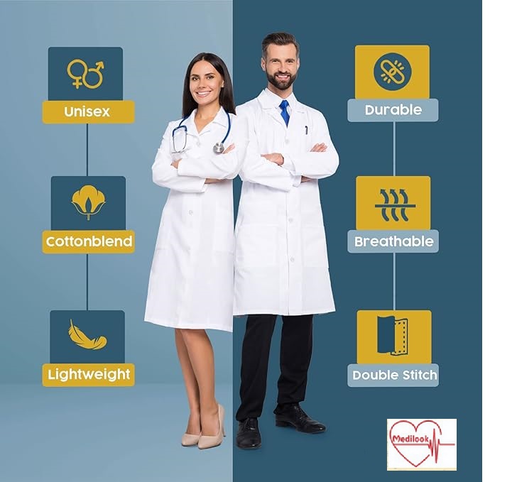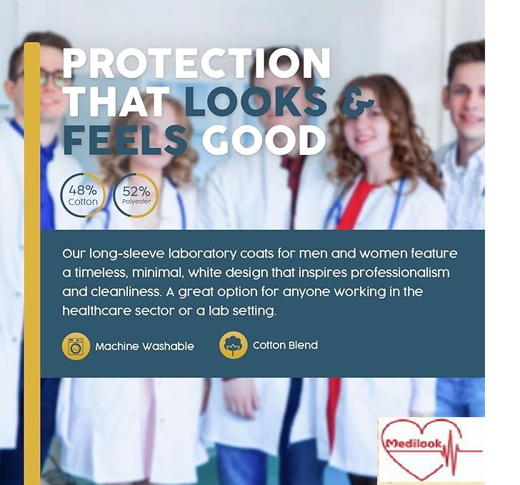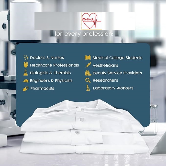 Professional Design: Full-sleeve lab coat with a neat collar, giving you a smart and professional appearance.